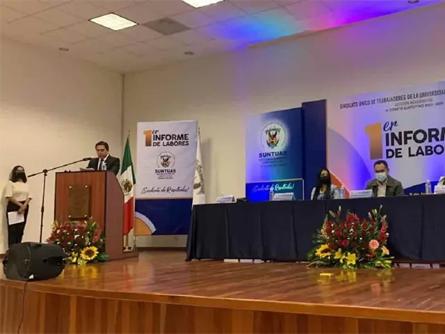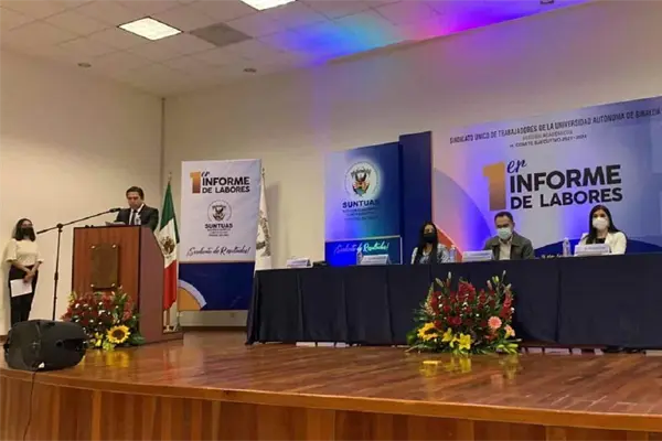 Con la presencia del rector Jesús Madueña Molina, el Secretario del Sindicato Único de Trabajadores al Servicio de la Universidad Autónoma de Sinaloa (Suntuas), José Carlos Aceves Tamayo presentó su primer informe de labores del periodo 2021-2024.