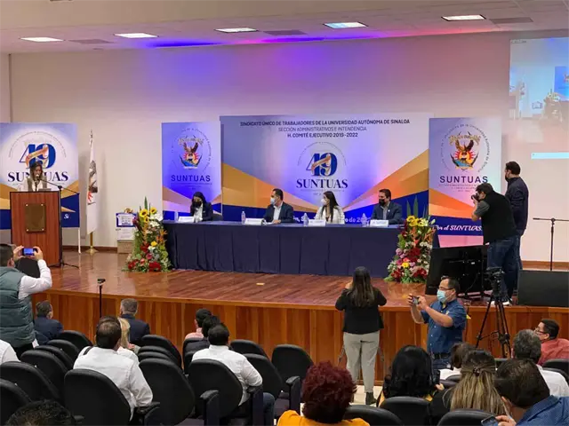 «Felicito al Suntuas Administrativos por su aniversario, son muchos años de lucha y muchos años que han hecho grande a la Universidad Autónoma de Sinaloa, yo siempre seré el primero en defender sus derechos», dijo.