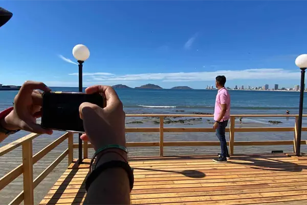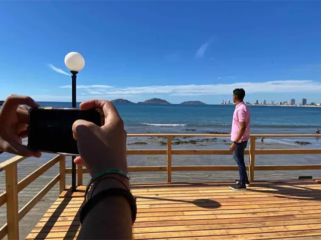 Las personas que visitan Mazatlán ya tienen un nuevo lugar en donde tomarse su foto del recuerdo, pues en Playa Norte se habilitó un espacio que asemeja un muelle con vista a las 3 islas, donde se aprecia una postal icónica del puerto.