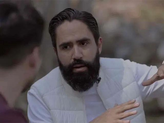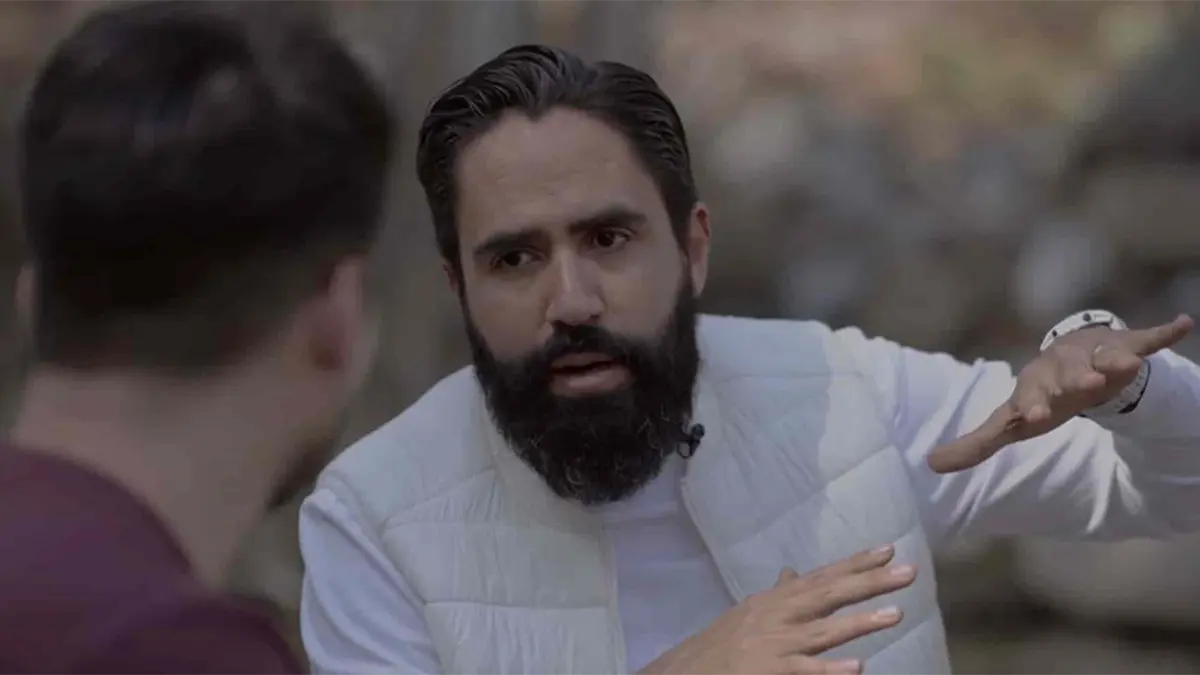 El «Master» Muñoz, vestido de blanco y negro, destaca por no portar vestimenta exótica como solía hacerlo; además, se hace acompañar del también coach, oriundo de España, Aymar Celdrán, con quien convive en un ambiente de naturaleza saturado por un bosque y un río enmarcando en un dialogo el proceso que el que el influencer pasó para reinventarse.