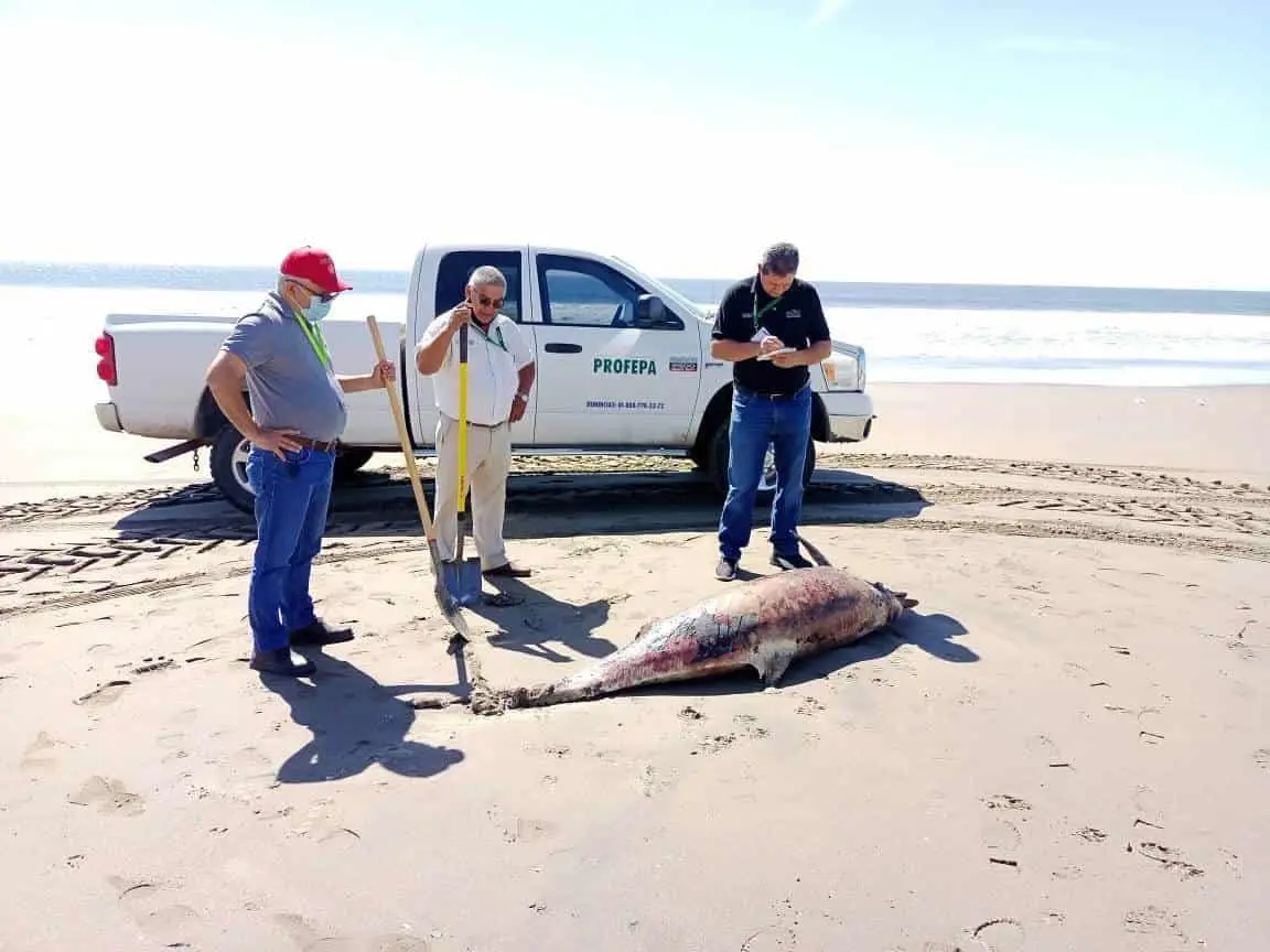 Otros dos delfines más aparecieron muertos en la playa de las Glorias, Guasave; con esto, suman 9 y una ballena, por lo que la Dirección de Ecología exhortó a las autoridades de la Comisión Nacional de Pesca y Acuacultura (Conapesca), así como la Procuraduría Federal de Protección Ambiental (Profepa) a realizar una investigación a fondo, señaló Hildelfonso Castro Castro, Director de Protección Civil.