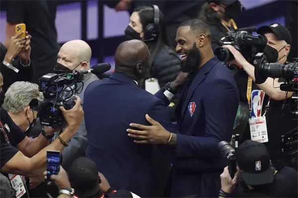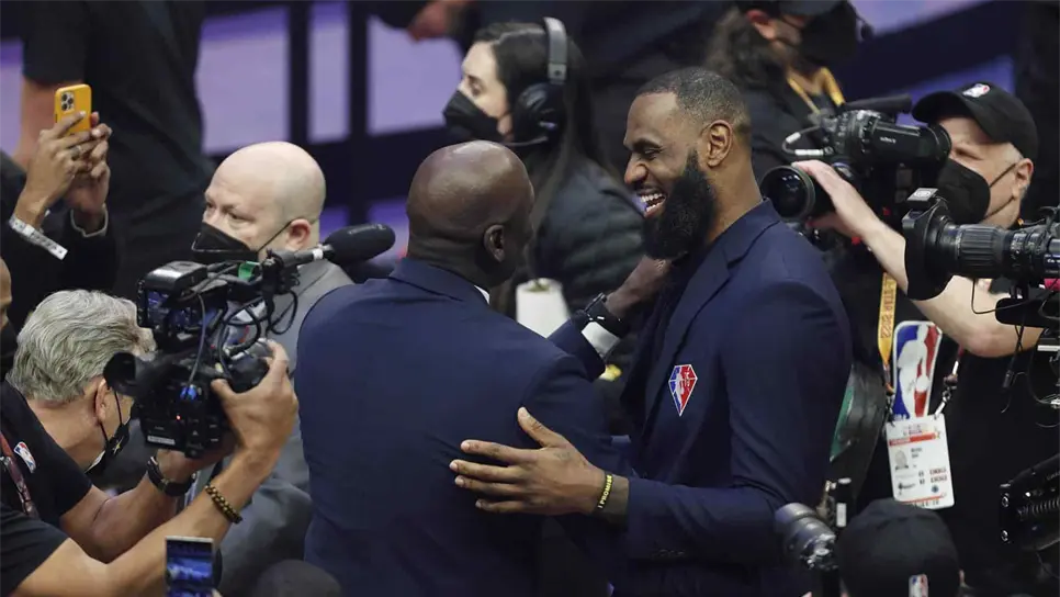 >LeBron James y Michael Jordan se dieron un gran abrazo en la cancha durante el descanso del All-Star, un momento de la noche que la NBA aprovechó para rendir homenaje a los 75 mejores jugadores de su historia.
