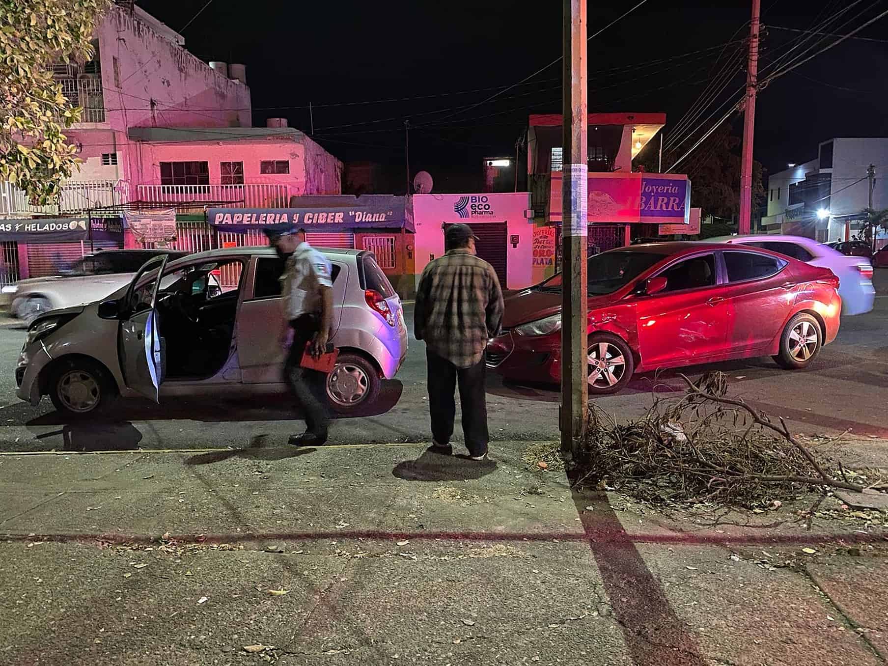 El accidente ocurrió en el cruce de la avenida Jesús Andrade y la calle Aguilar Barraza, en donde impactaron un vehículo Spark gris y un auto Hiunday tinto de reciente modelo.