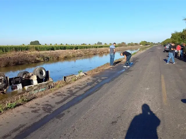 Góndola cae al canal El 7, tras choque contra vehículo en Culiacán