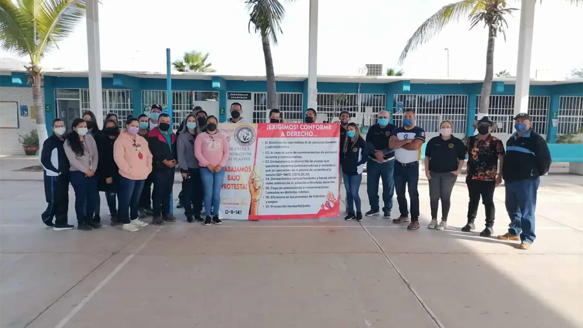 Los trabajadores, que laboran bajo protesta, colocaron mantas con algunas exigencias conforme a derecho entre ellas, la basificasión con motivo 10 de personal docente y administrativo, el cese al corte de nombramientos, la liberación de plazas administrativas y docentes que quedaron vacantes, la compactación y horas adicionales, así como el pago de prestaciones y remuneraciones pendientes por distintos rubros.