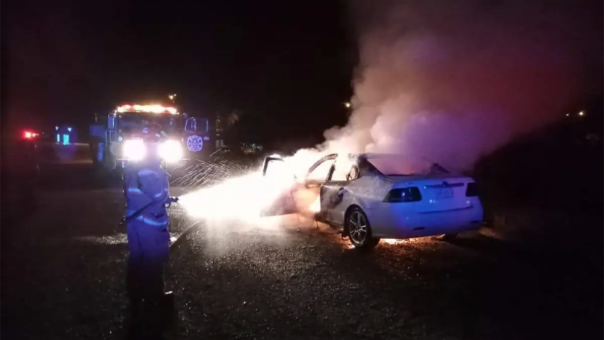 Se incendia vehículo sobre la México 15 a la altura de Pericos