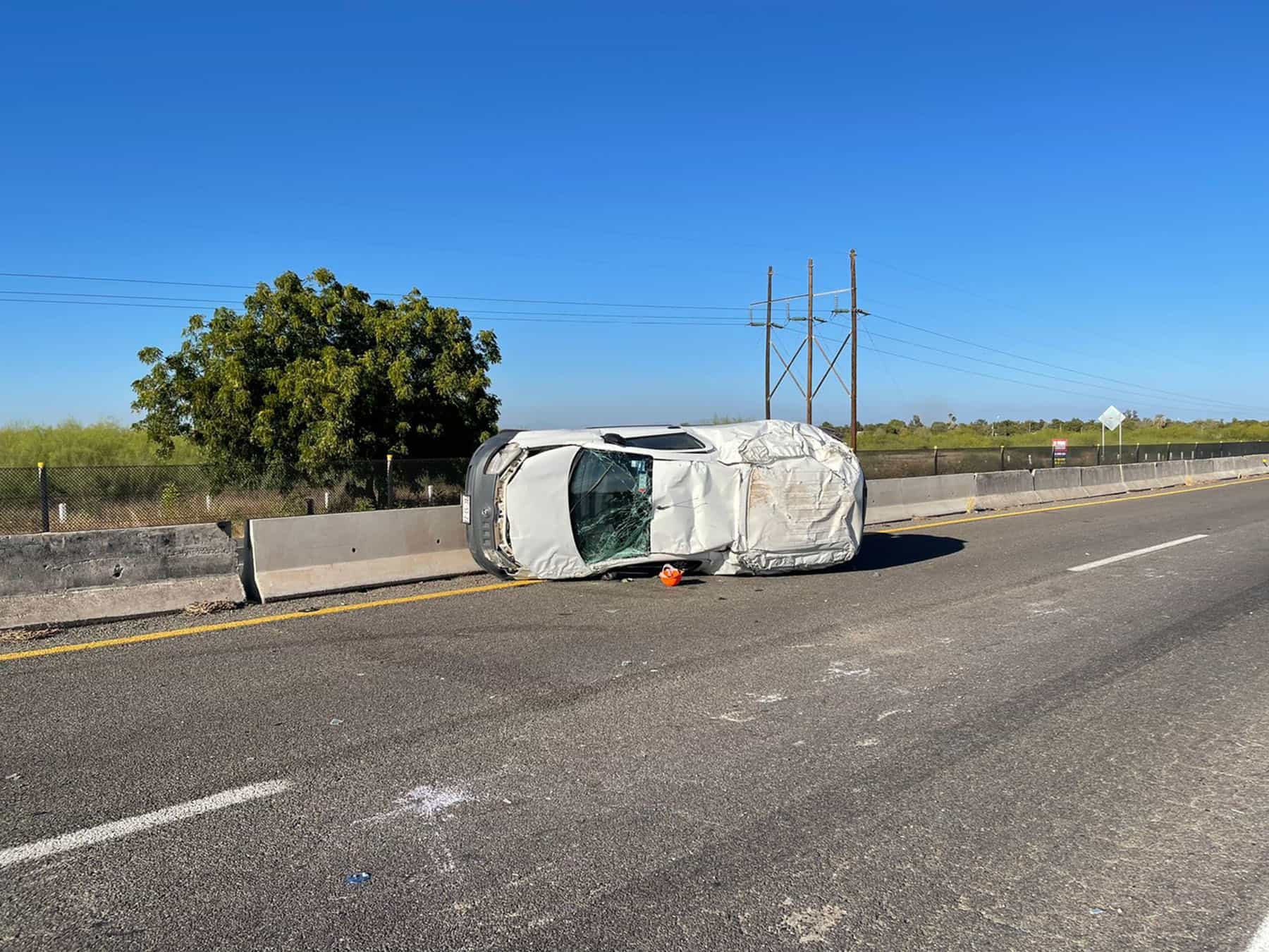 Vuelca vagoneta en la México 15 en Las Brisas, Guasave