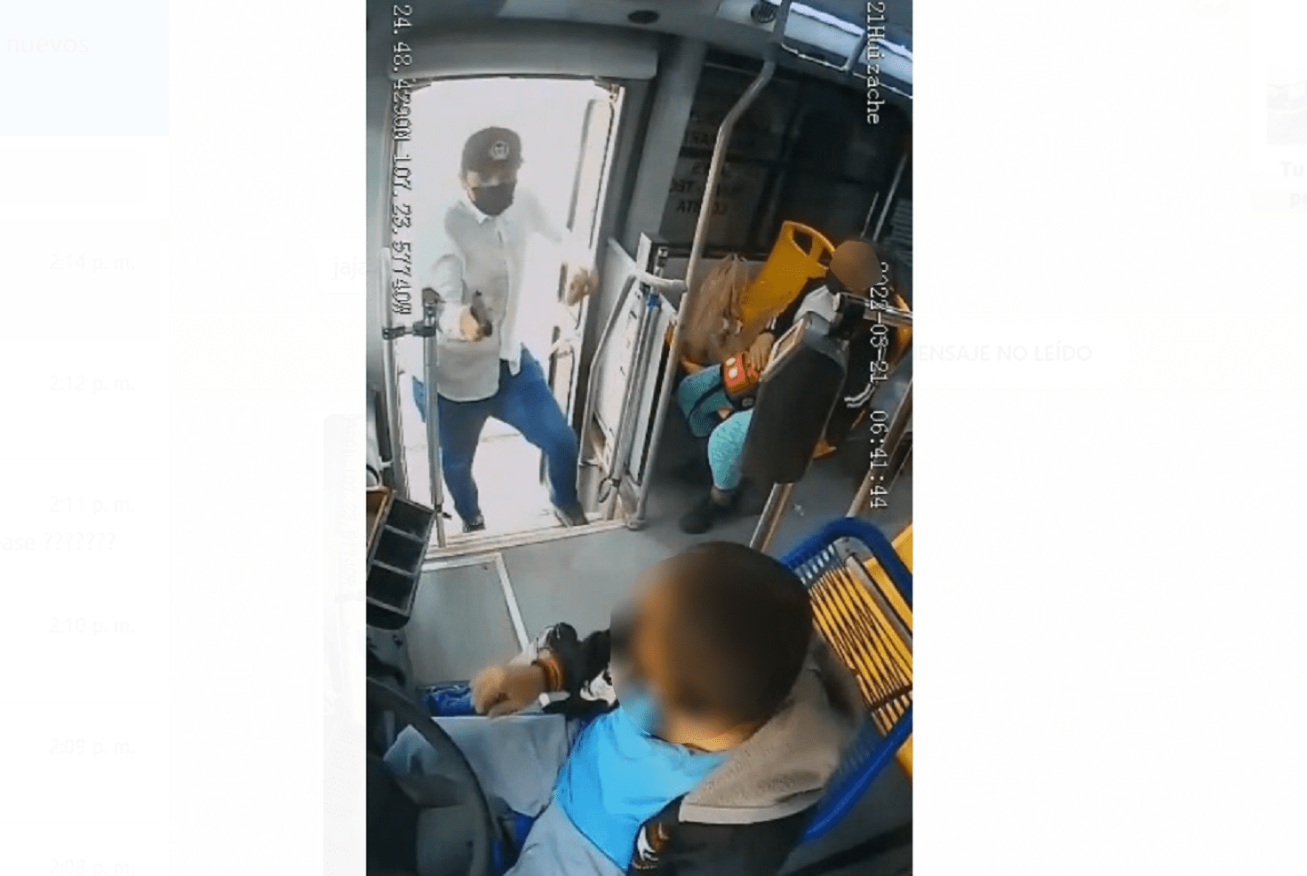 En las imágenes se observa que el asalto duró menos de un minuto, donde, con palabras altisonantes, el asaltante exige el dinero al chofer, pero tranquiliza a los pasajeros, diciéndoles que a ellos no les quitará nada.