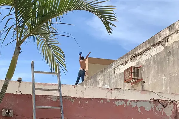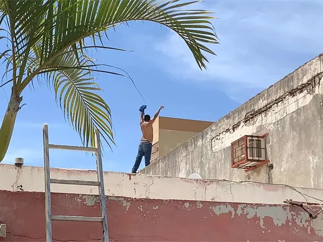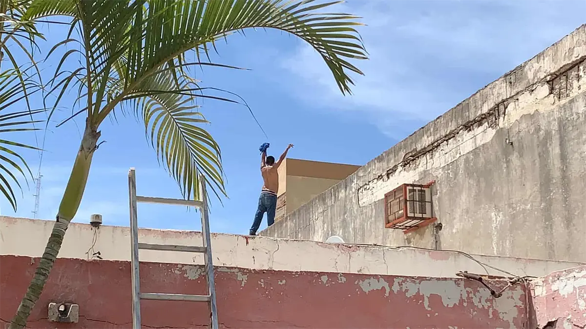 En la azotea se encuentra un hombre identificado como Rosario Palafox, quien al parecer está bajo los influjos de algún estupefaciente.