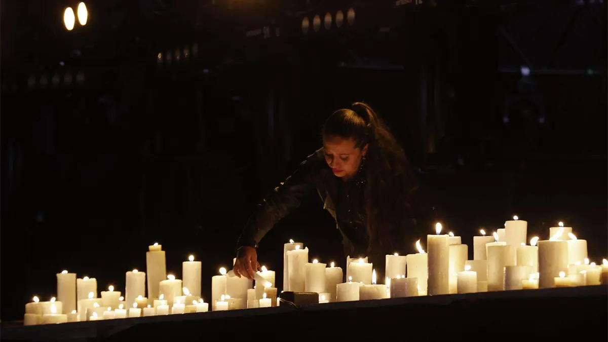 La tarima a la que se iba a subir la banda musical fue convertida en un altar en donde fueron prendidas velas en señal de duelo.