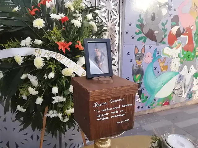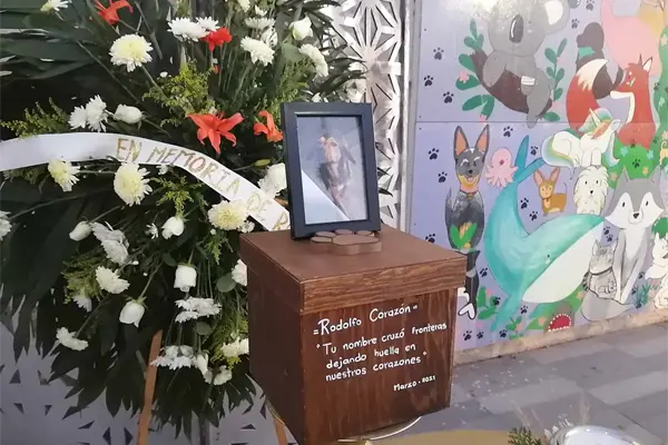 Animalistas de la ciudad instalaron una corona, veladoras, flores y las cenizas del perrito con su fotografía, en señal de protesta por el maltrato animal, situación que sigue vigente en la región.