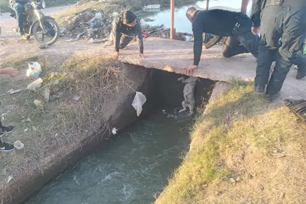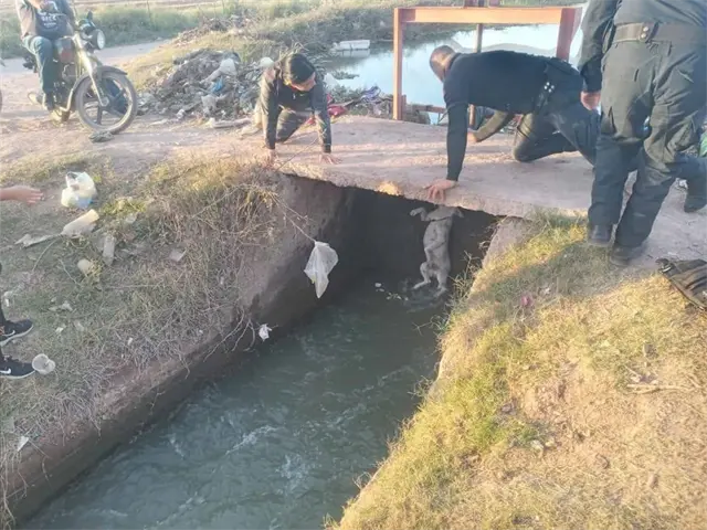 Se trata de «Güero», un perrito que es la mascota de una niña del ejido antes mencionado, quien al ver la patrulla le salió al paso a los elementos y desesperadamente les pidió ayuda, ya que la corriente lo arrastraba hacia una compuerta .