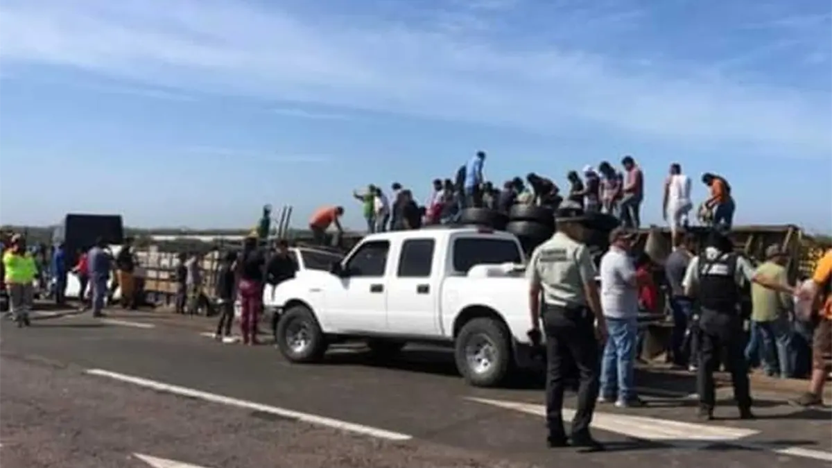 El accidente ocurrió cuando la unidad que transportaba aproximadamente 150 cerdos circulaba de norte a sur y en el kilómetro 90, en las inmediaciones de Celestino Gasca, el operador perdió el control y volcó sobre su lado derecho.