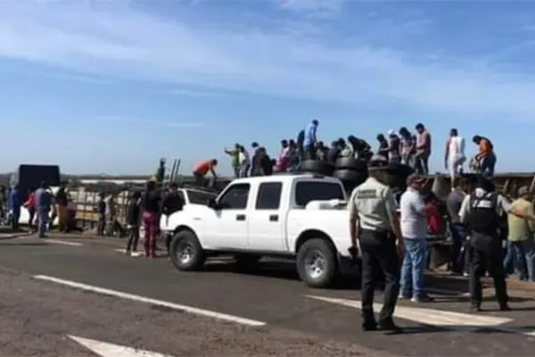 Un tráiler cargado con ganado porcino volcó, la tarde de este jueves, sobre la autopista Mazatlán - Culiacán, lo que provocó que decenas de cerdos perdieran la vida y que pobladores acudieran a rapiñar.