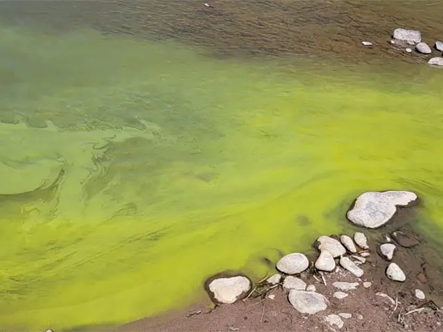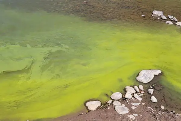 >Pobladores hicieron llegar a Luz Noticias imágenes donde se ve una sustancia verde en las aguas del río.