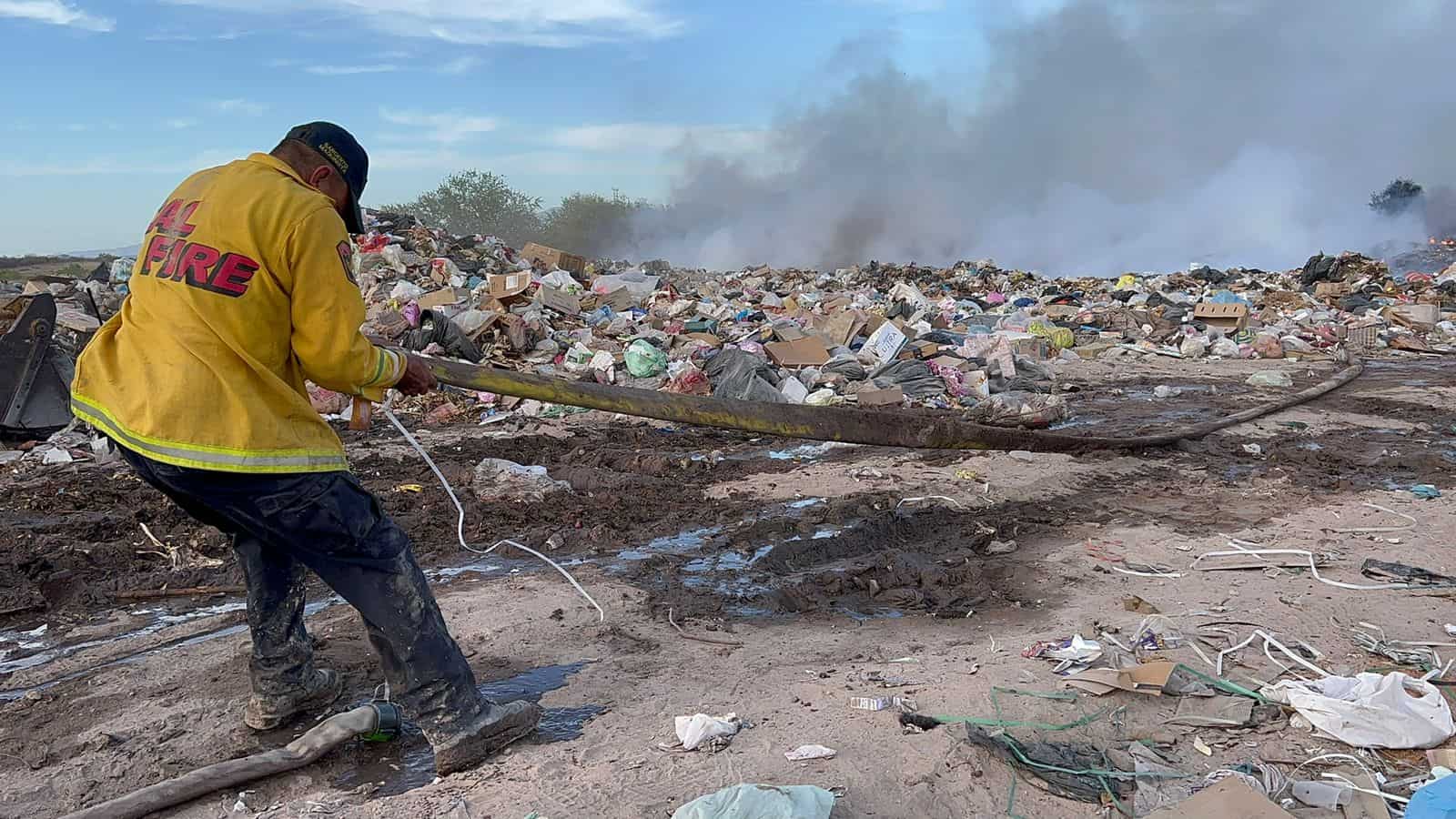 Intensifican trabajos para sofocar el incendio del basurón municipal