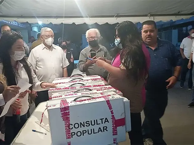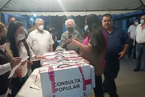 Las primeras urnas del proceso para la Revocación de Mandato llegaron a las instalaciones del Instituto Nacional Electoral (INE) Distrito 02 a las 20:00 horas de este domingo 10 de abril y corresponde a las casillas 15 básica, 15 contigua 1, 19 básica, 19 continúa 1, 19 contigua 2.