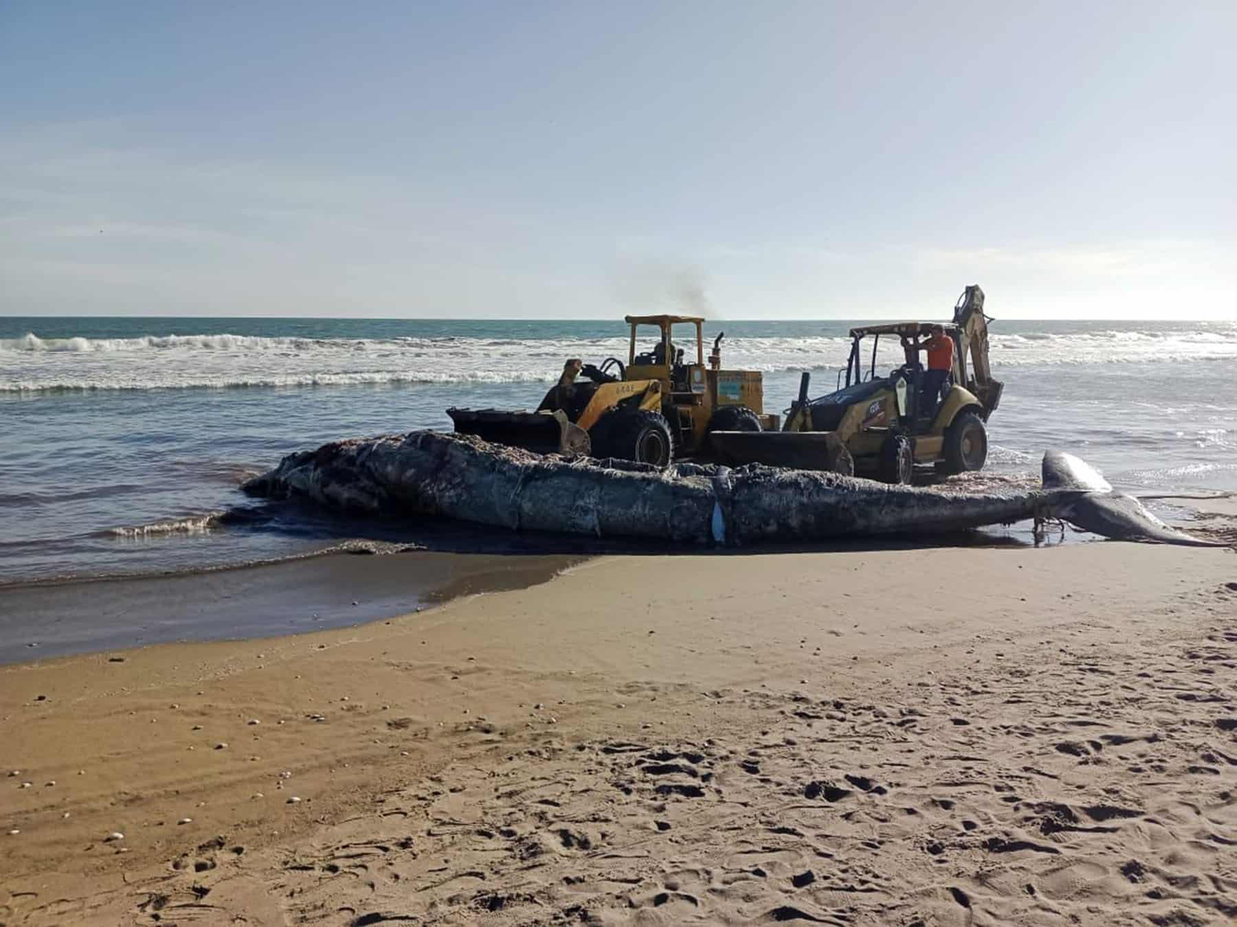 «Son alrededor de 30 personas las que intervinieron para desencallar a la ballena, con ayuda de un trascabo para poder enterrarla en la playa. Es una ballena adulta, sexo quién sabe, porque está en muy avanzado estado de descomposición, muy difícil la maniobra, estamos trabajando con un trascabo para buscar enterrarla, además que es un área muy comercial, esa área de la playa, estamos tratando de limpiar todo el espacio», precisó.