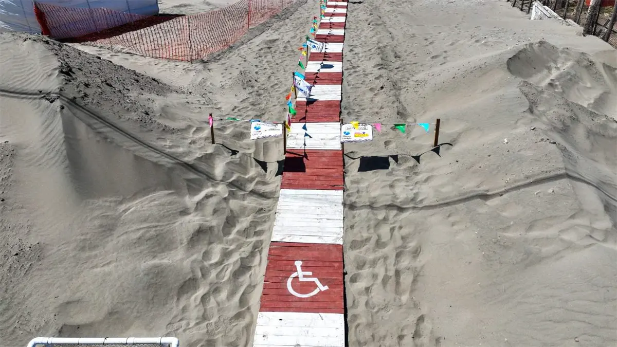 Las Glorias se convirtió en la primera playa incluyente de Sinaloa, donde se instalaron 4 andadores para personas con discapacidad, que les permitirá acceder con bastón o silla de ruedas hasta la playa.