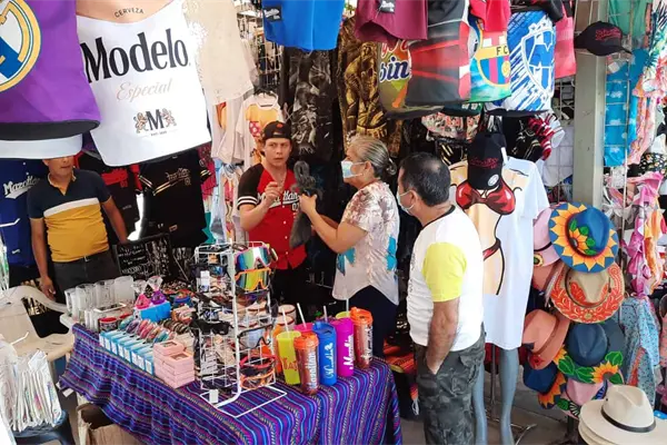 «Los souvenirs, las playeras», expresó el comerciante.