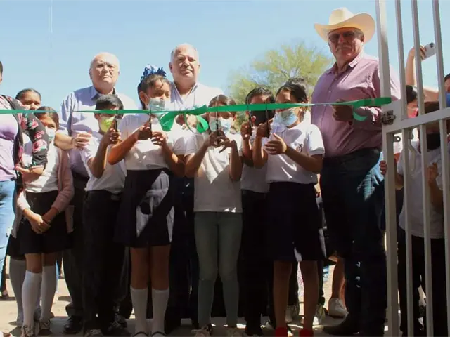 >El presidente municipal, Rolando Mercado, autoridades educativas, y sociedad civil, dieron por inaugurada la biblioteca en el ejido El Coyote.