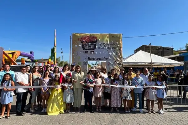 Fue en la entrada principal donde la presidenta Municipal, Claudia Liliana Valdez Aguilar, realizó el corte del listón acompañada del comité de la feria, el cuerpo de Regidores, las hermosas reinas y Cabildo Infantil 2022.