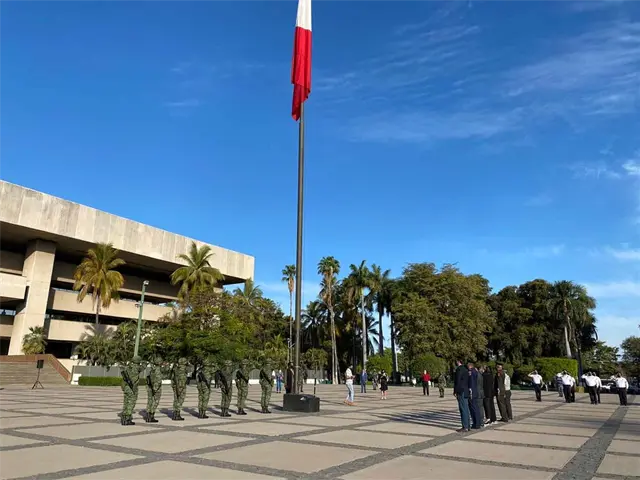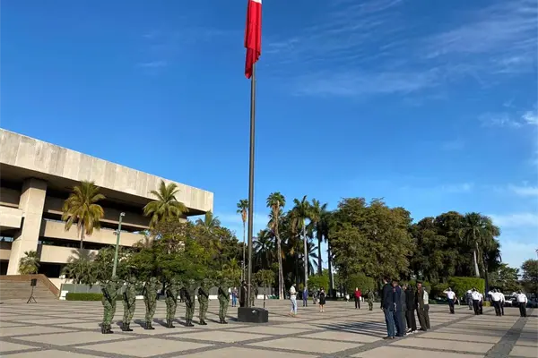 En conmemoración del Día del Trabajo, se realizó el izamiento de bandera en honor al Movimiento Obrero, en Culiacán.