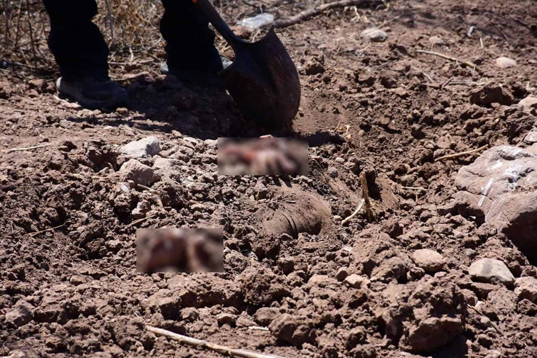 La víctima no está identificada hasta el momento, pero se informó que vestía un pantalón de mezclilla, de color azul, y fue localizado amarrado de pies con hilo forrajero; además, como señas particulares, cuenta con múltiples tatuajes en su cuerpo. Como información preliminar, se indica que se trata de un hombre, a quien a simple vista se le aprecian signos de tortura e impactos de bala, además el cuerpo se encontraba en estado de descomposición, pues se dijo que pudo haber tenido por lo menos dos días de haber sido enterrado en este lugar.