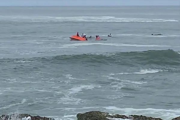 Oleaje voltea una embarcación en Mazatlán; rescatan a sus tripulantes