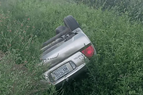 El accidente se registró esta tarde sobre la carretera que comunica de la ciudad de Guasave hacia la comunidad de La Cofradía de Tamazula, justo frente al poblado de San Pedro Paredes, donde la mujer se descuidó y se salió del asfalto, lo que a su vez causó que terminara volcada entre la maleza.