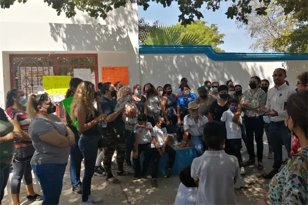 Por su parte, las madres de familia rechazaron la propuesta de volver a clases en línea, bajo el argumento que no tienen acceso a internet y computadoras y ofrecieron la contrapropuesta que los niños acudan a clases presenciales, de 8 a 10:30 de la mañana y las tomen debajo de los árboles.