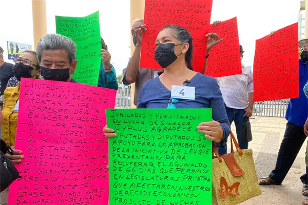 Jubilados y pensionados del Sindicato de Trabajadores al Servicio del Estado (STASE), se manifestaron en el Congreso estatal para exigir que se descongele su iniciativa de reforma de la Ley de Pensiones (IPES), y les puedan pagar su prestación dignamente y sin contratiempos.