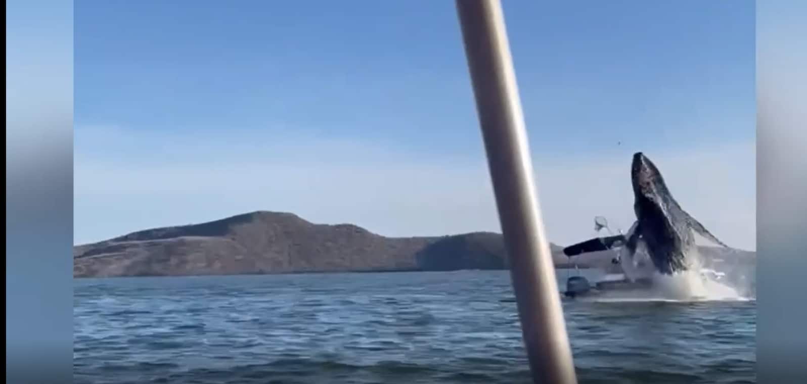 >Las autoridades desconocen el estado de la ballena que cayó sobre embarcación.