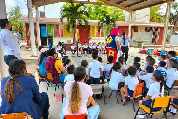 Con la intención que desde pequeños se interesen en ser buenos conductores y buenos peatones, la Delegación de Vialidad y Transportes visitó esta mañana el jardín de niños Gandhi, ubicado en el fraccionamiento Alameda en Mazatlán.