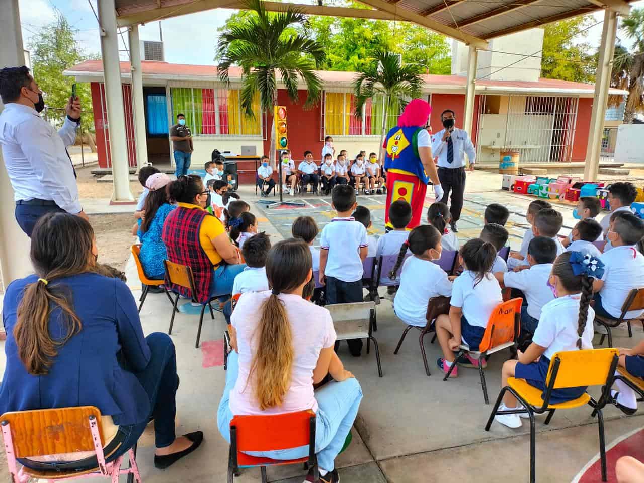 Ahí, aprovecharon para llevar al payaso Señalín, quien platicó con los pequeños sobre qué cosas se pueden hacer y cuáles no.