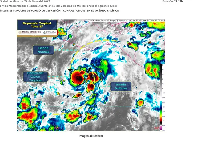 >Con 90% de probabilidad de desarrollo ciclónico, se intensificó a la Depresión Tropical Uno-E, generando el primer ciclón tropical de la temporada de la zona.