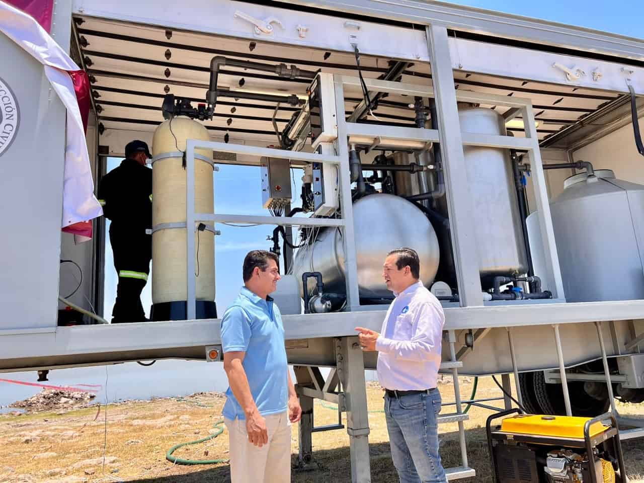 >Gobierno del Estado, en coordinación con Protección Civil y la Junta de Agua Potable, pusieron en marcha una planta purificadora que surtirá de agua a los ciudadanos que lo requieran de forma gratuita.