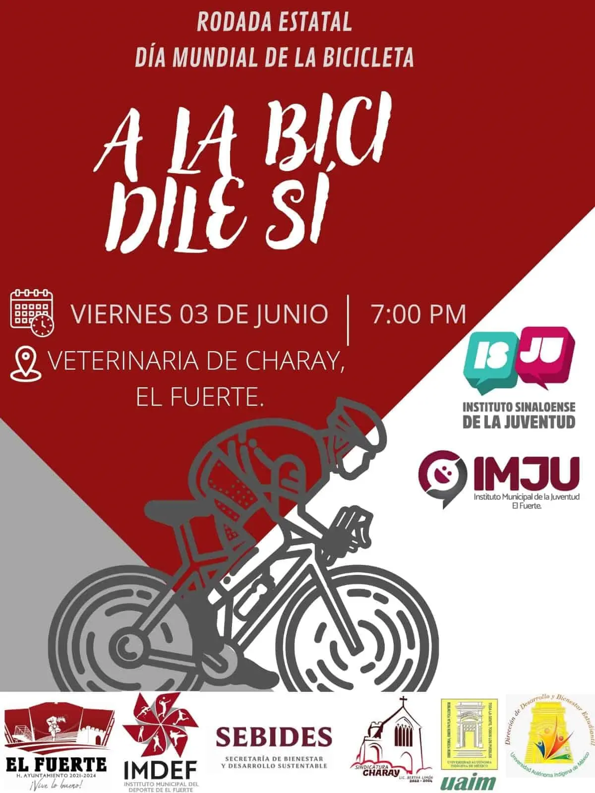 Los integrantes del Instituto de la Juventud del municipio de El Fuerte a cargo de la directora de la dependencia, Amariles Flores Torres, invitan a la ciudadanía a unirse a la rodada «A la Bici Dile Si», conmemorando este 03 de junio El Día Mundial de la Bicicleta.