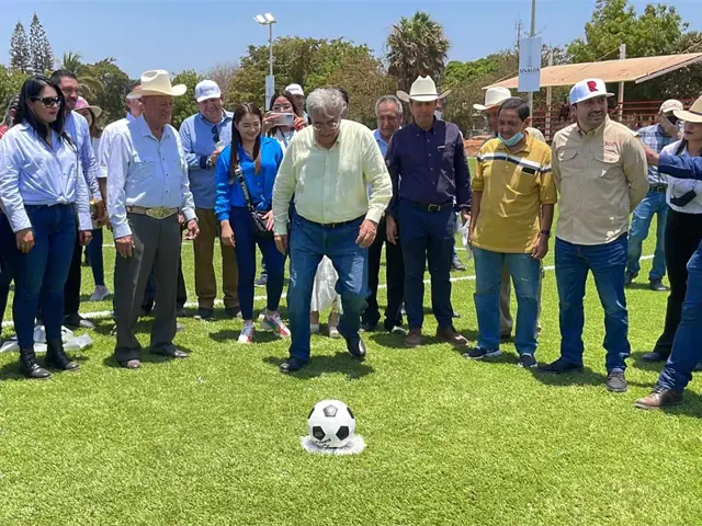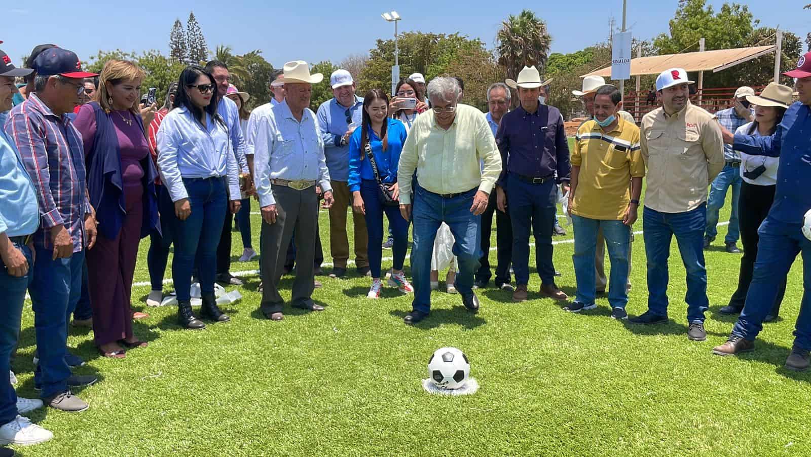 El Gobernador del Estado de Sinaloa, Rubén Rocha Moya, inauguró la cancha de futbol sintético en el campo pesquero La Reforma, Angostura, este sábado a mediodía en gira por el centro de la entidad, el mandatario junto al José Luis Zavala, Secretario de Obras Públicas, Miguel Ángel Angulo, Presidente Municipal de Angostura, y David Eduardo Vargas, Presidente del PIDS, cortaron el listón para hacer entrega de manera oficial de este espacio deportivo.