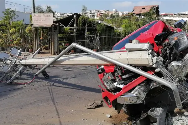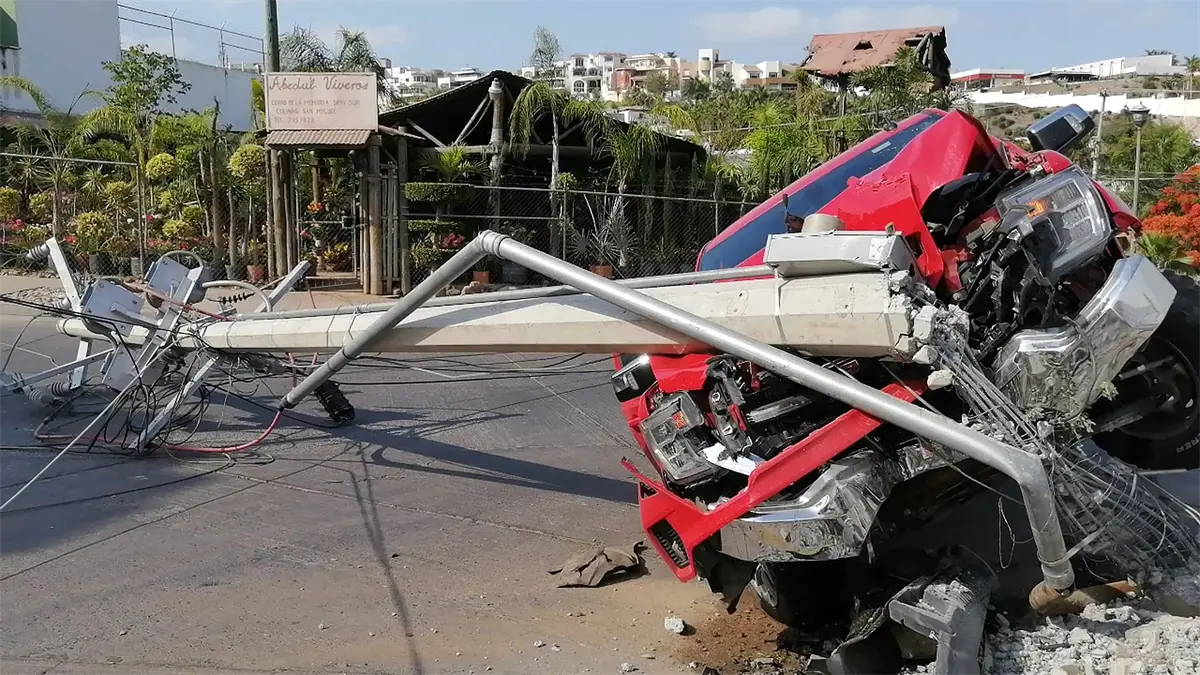 El conductor de una camioneta Sierra GMC, de reciente modelo, sufrió heridas tras perder el control de la unidad y derribar un poste de la Comisión Federal de Electricidad en el sector Colinas de San Miguel, en Culiacán.