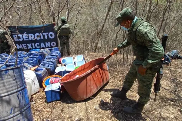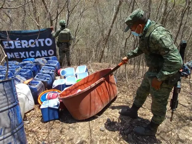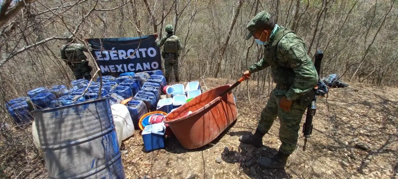 Tras trabajos de inteligencia, elementos del Ejército Mexicano lograron el aseguramiento de cinco narcolaboratorios para la elaboración de droga sintética en las comunidades de Vado Hondo, Bacata, La Hilama y Mezcaltitlán, pertenecientes a la la zona serrana de Cosalá y en Río Elota, en el municipio de Elota.