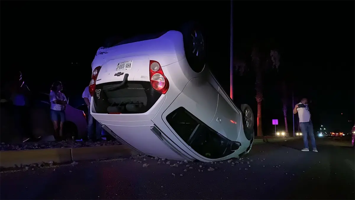 El hecho provocó que el Nissan se impactara de frente contra el vehículo Spark, lo que provocó que este último volcara y terminara del otro lado del camellón central sobre los carriles que circulan hacia el norte del Antonio Rosales.