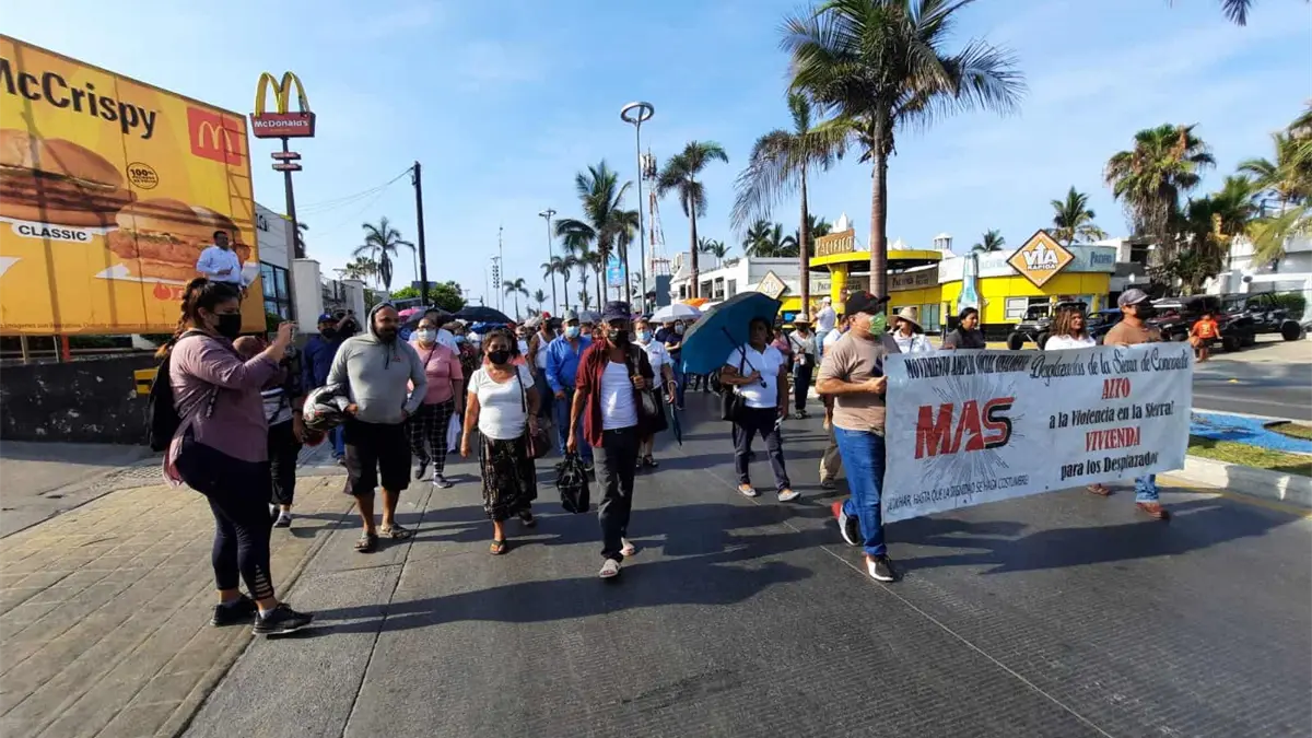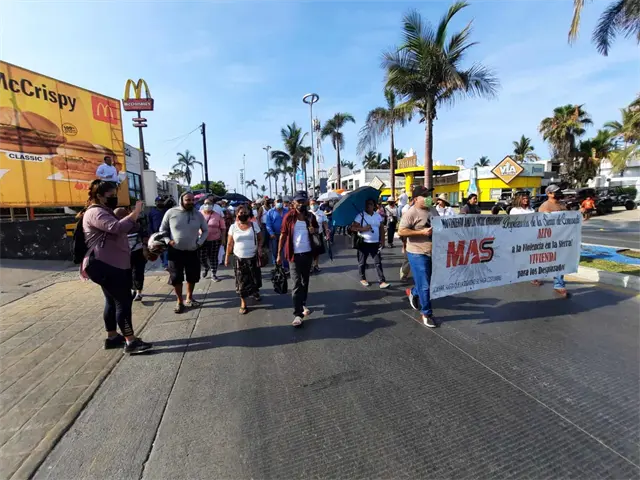 Este domingo cientos de desplazados del sur de Sinaloa, particularmente de Concordia, El Rosario y Villa Unión, se manifestaron de forna pacífica en plena franja turística de Mazatlán, sobre la avenida Camarón Sábalo, en exigencia de sus derechos y necesidades, pues desean tener una mejor calidad de vida después de casi 5 años de haber salido de sus tierras.