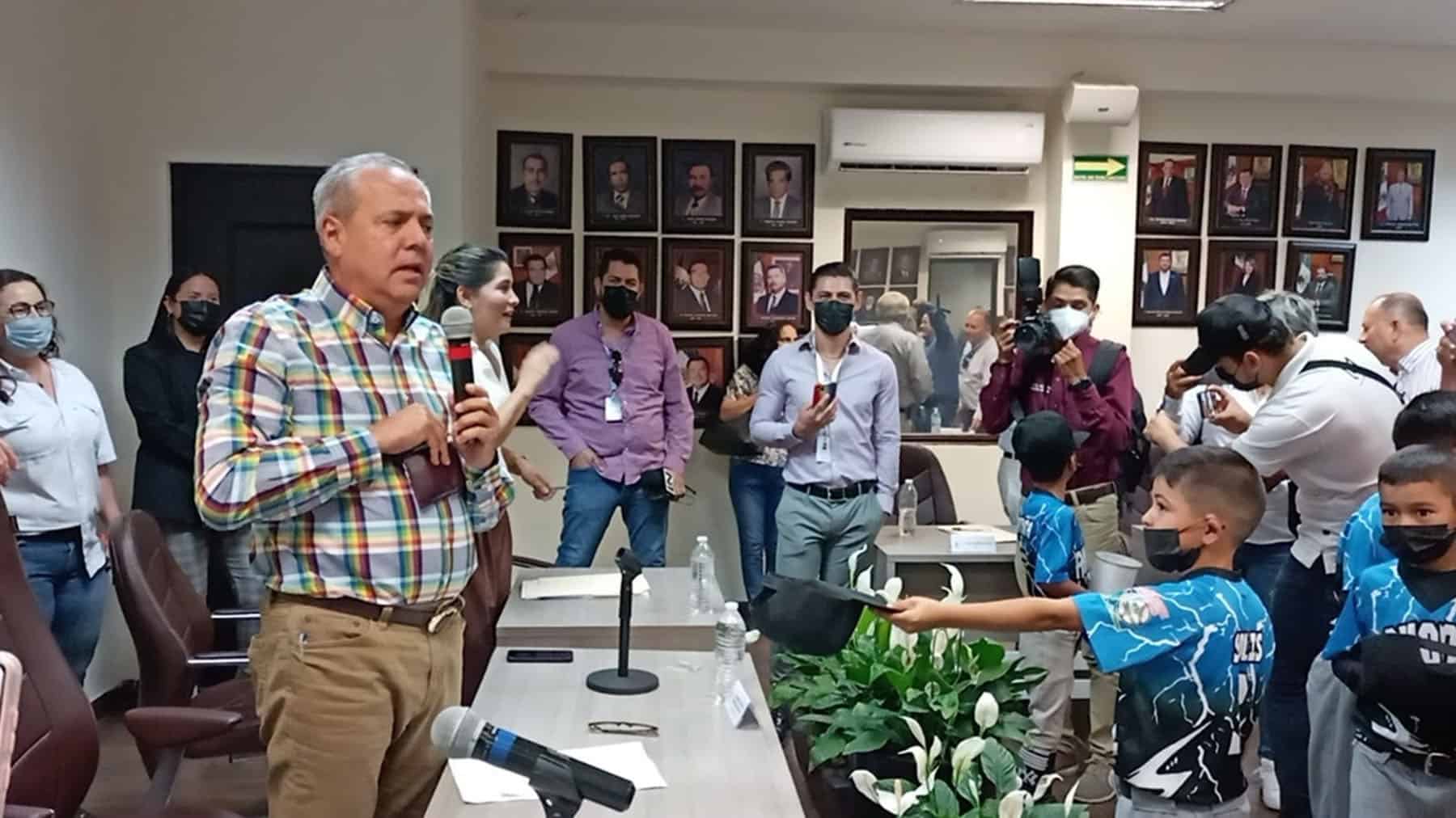>Los infantes y su entrenadora acudieron a la sesión de Cabildo para pedir ayuda al alcalde Gerardo Vargas y el presidente obligó a regidores a «mocharse».