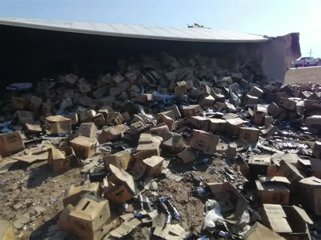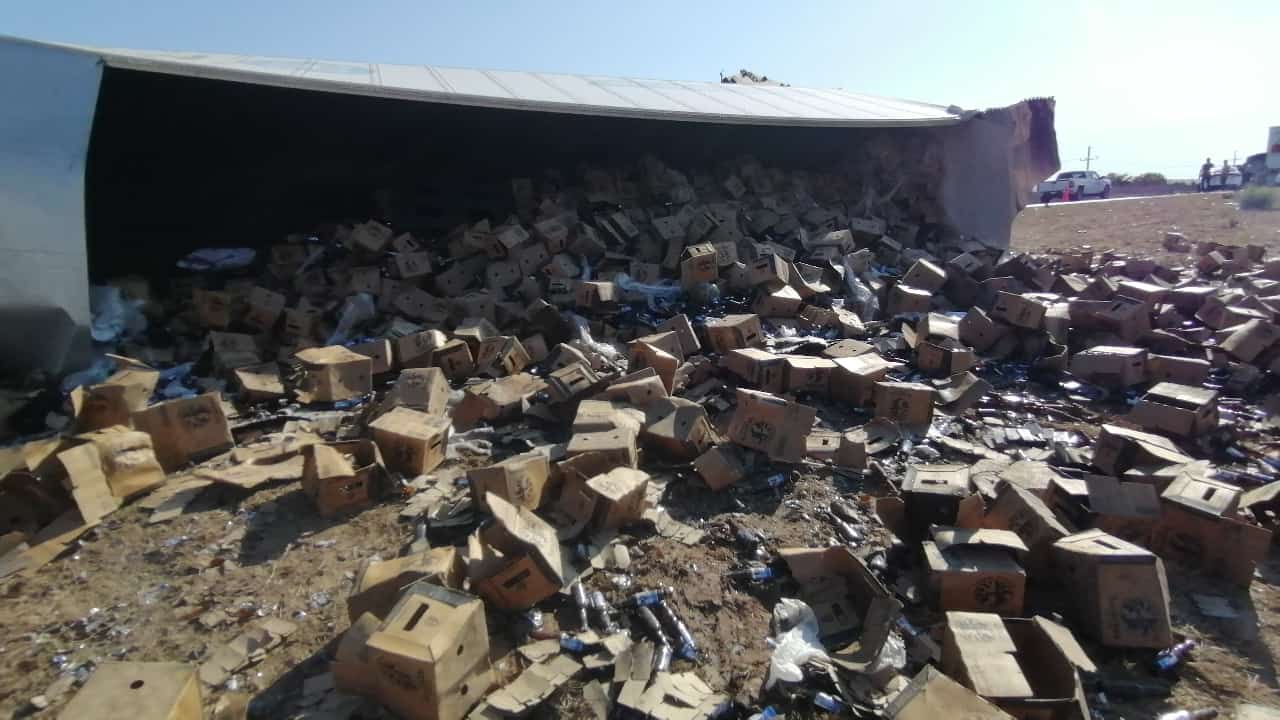 Luego de que la caja de un tractocamión de una empresa cervecera se desprendió y volcó con miles de botellas de cerveza en la carretera México 15, al norte de Guasave, automovilistas y vecinos del lugar rapiñaron las bebidas embriagantes.