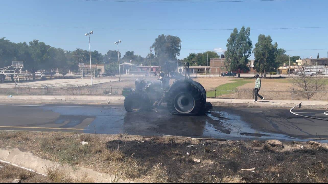 Como pérdida total termino un tractor el mediodía de este martes presuntamente luego de sufrir aparente cortocircuito sistema eléctrico; la unidad agrícola arribaba a la sindicatura de Juan José Ríos, Guasave, cuando sucedió el siniestro, la cual tiene un valor de más de medio millón de pesos.