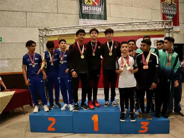 Kata por equipos, categoría Juvenil Mayor, conformado por Brandon García, Jairo Sandoval, ambos de Culiacán y Neftali López de Angostura. La plata fue para Jalisco.