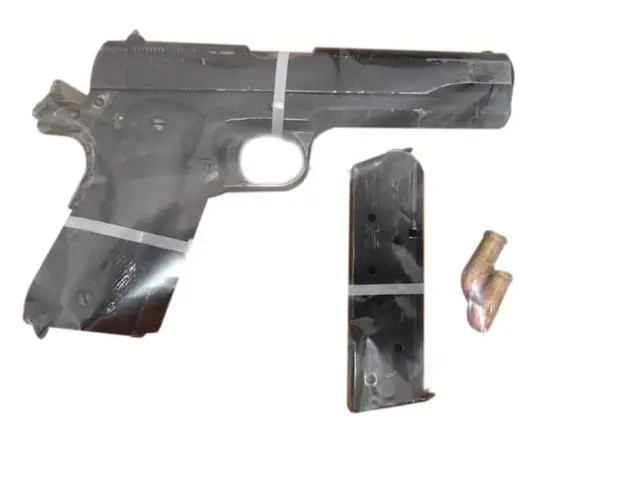 Posteriormente, otro civil salió del mismo domicilio y ambos fueron abordados por los uniformados, quienes les aseguraron las armas, entre ellas una calibre .380, con cargador abastecido.
