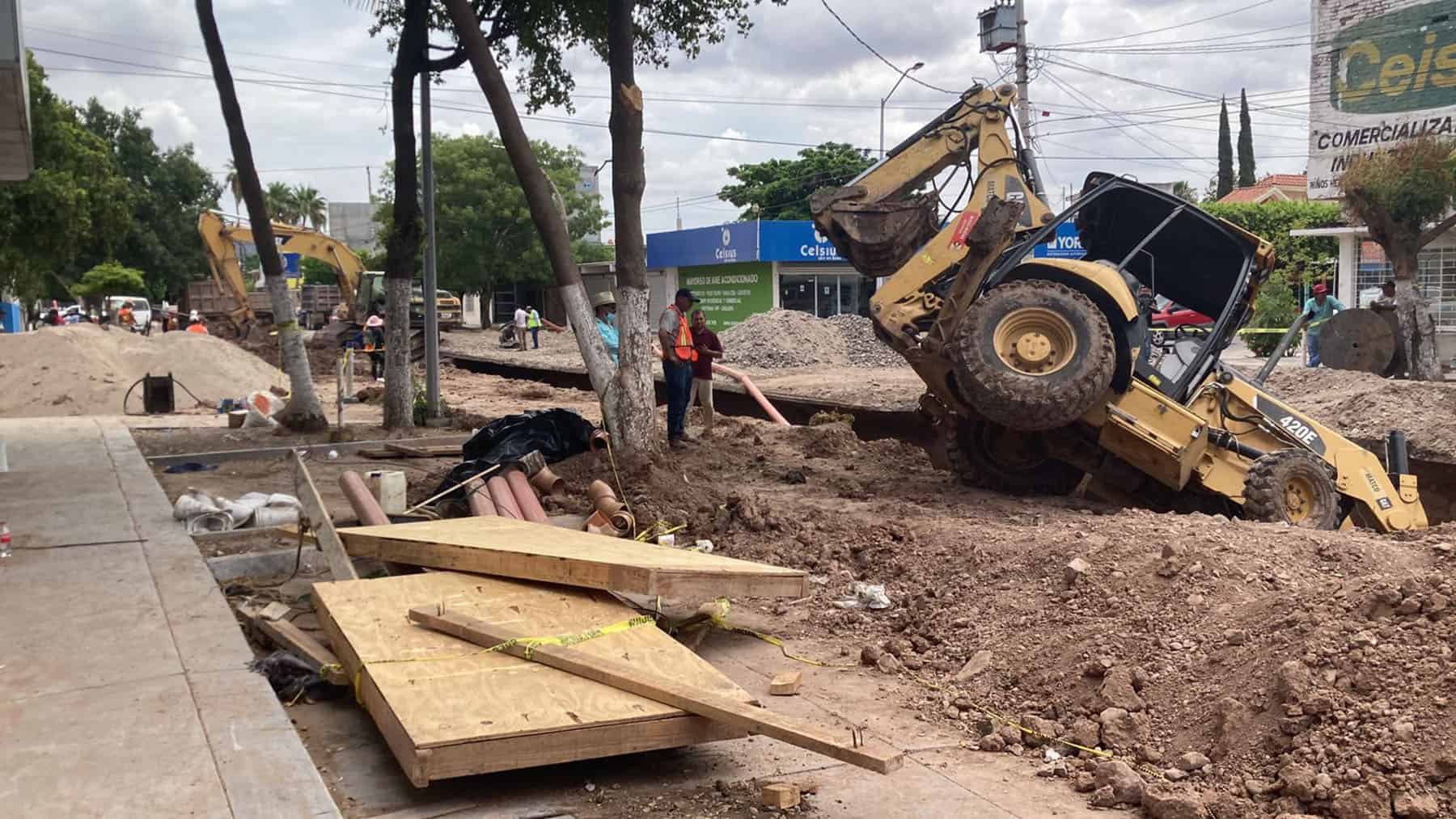 Se forma socavón y cae retroexcavadora en Los Mochis