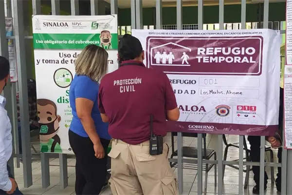 Víctor Jesús Ortiz López, coordinador operativo de Protección Civil en Ahome, informó que en total se cuenta con 107 refugios temporales en el municipio de Ahome, de los cuales 15 son de primera instancia, entre ellos 4 en la ciudad de Los Mochis (uno de ellos el del Cobaes 02).